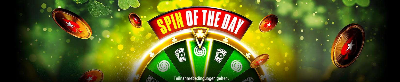 Du kannst während des unten angegebenen Angebotszeitraums Drehs am Spin-des-Tages-Glücksrad erhalten und hast damit die Chance, eine zufällige Prämie in Form von Freispielen oder Cash zu gewinnen.