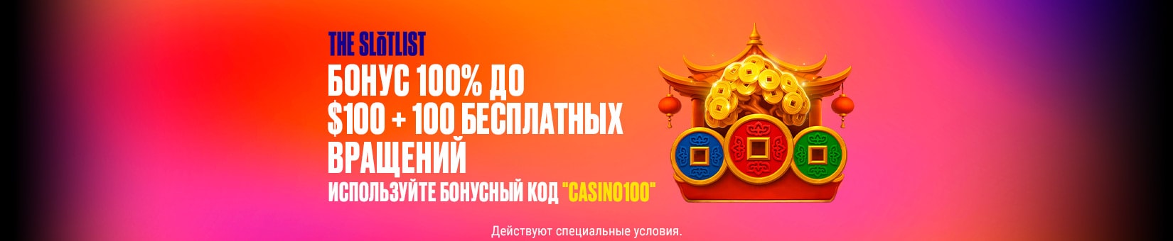 После первого пополнения счета Вы получите бонус 100% от суммы депозита. Бонус и депозит будут зачислены на Ваш счет в виде единого мгновенного бонуса казино, который можно использовать в указанных слот-играх.